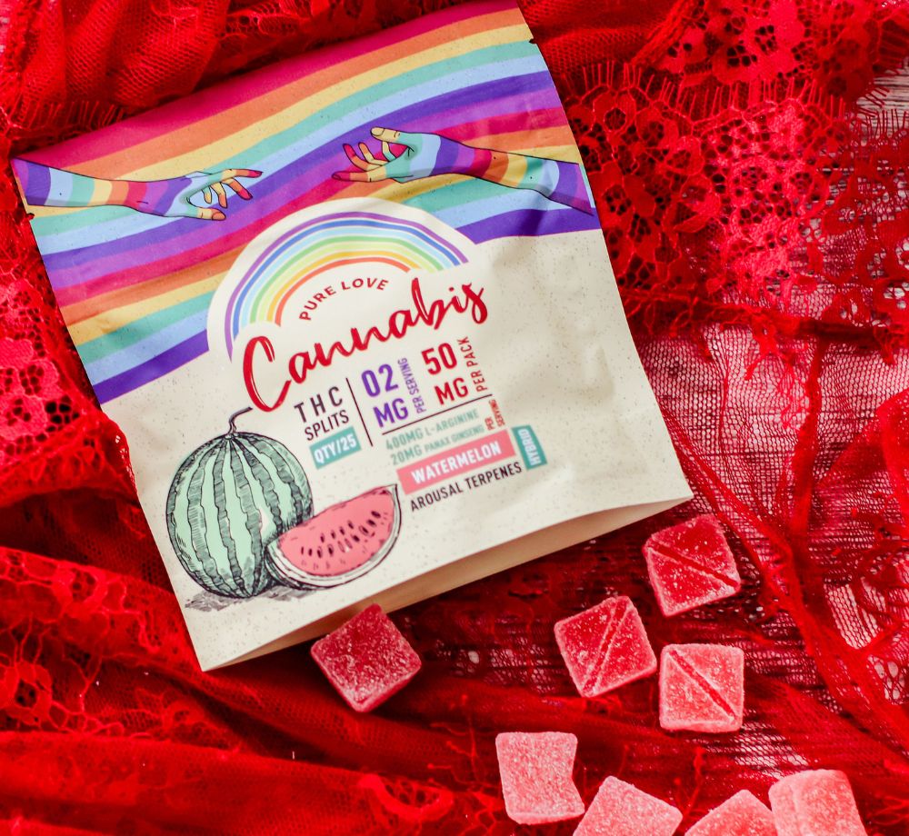 The special formula Pure Love Cannabis Watermelon Gummies features a blend of sexual enhancement terpenes, selected to elevate mood and intensify experience. The pomegranate flavor delights taste buds and enhances pleasure and connection.