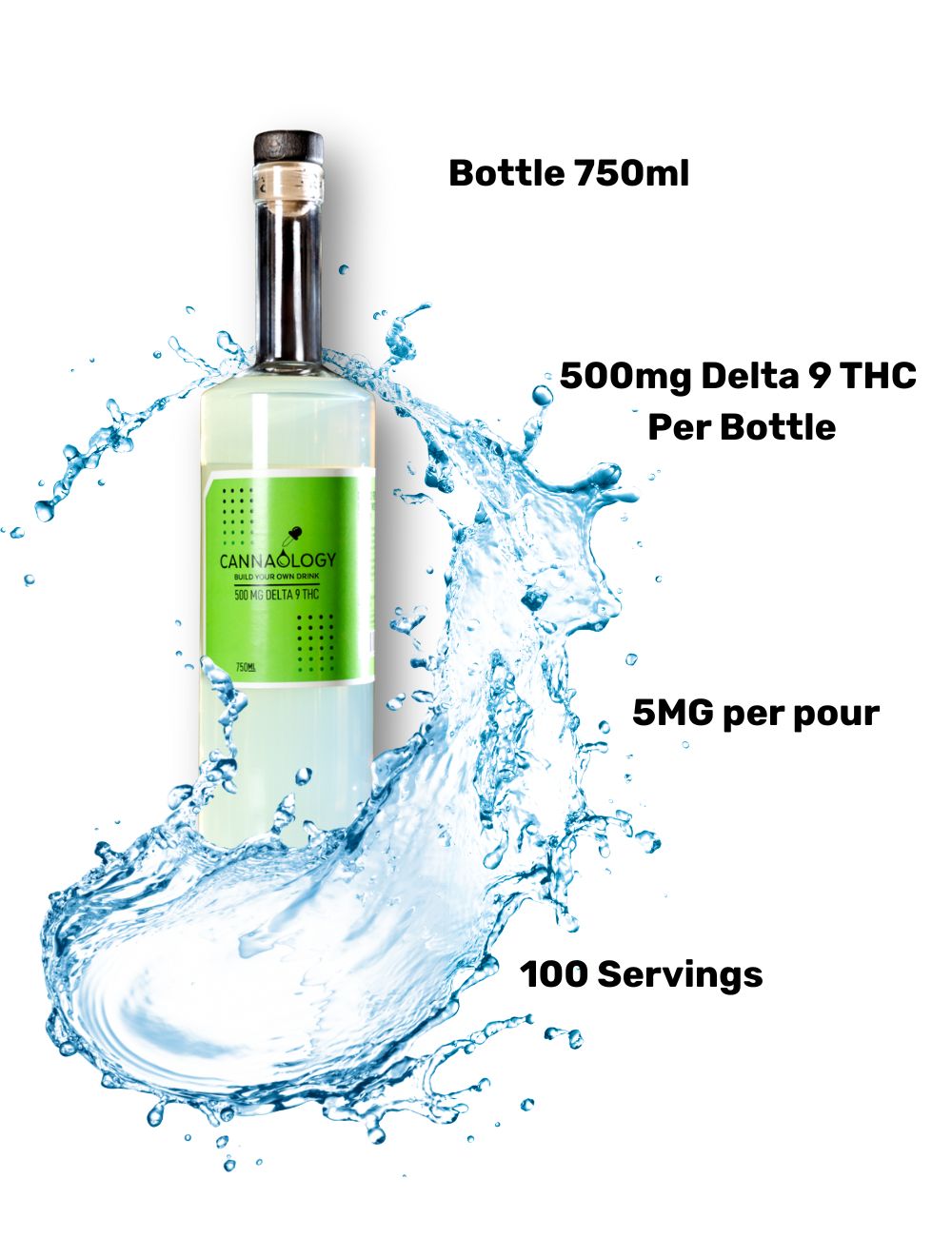 A THC drink bottle is a 750ml Cannabis bottle infused with 500 milligrams of THC. Each standard pour contains about 5 mg of THC, making it easy to mix into beverages like soda, juice, or mocktails for a customizable cannabis drink.